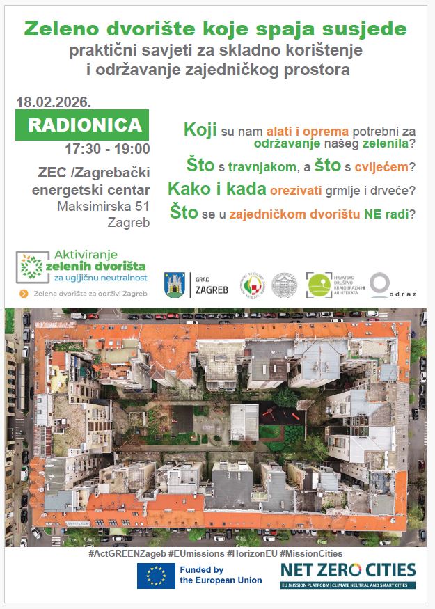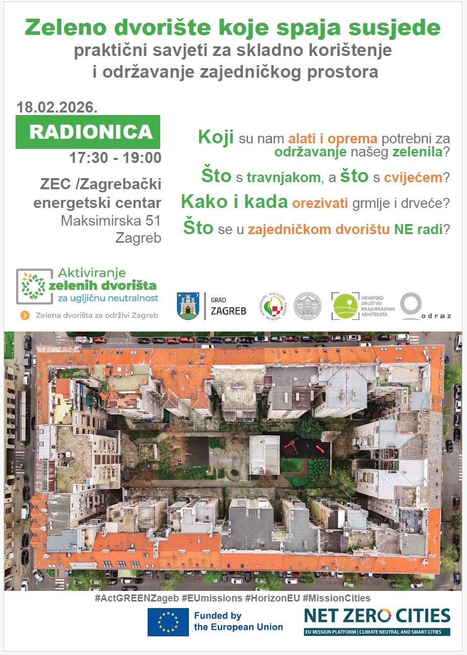 pozivamo stanovnike i predstavnike stanara prijavitelje na Javni poziv za provođenje i financiranje mjera ozelenjivanja dvorišta Grada Zagreba te predstavnike dvorišta koja su uređena u sklopu pilot projekta grada Zagreb na interaktivnu radionicu: